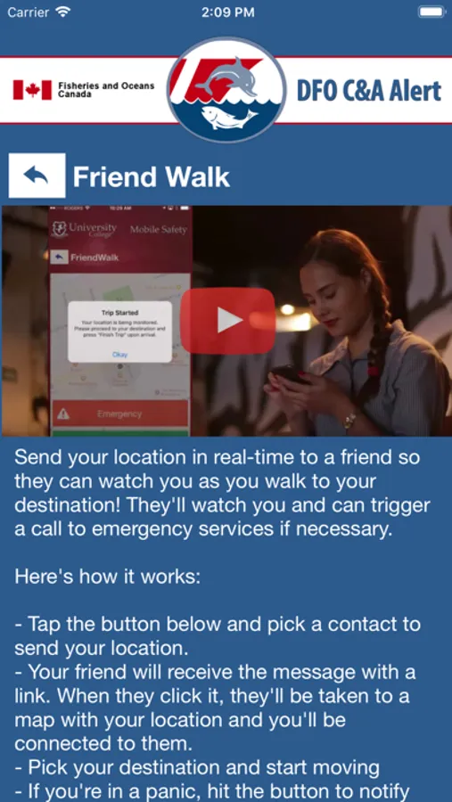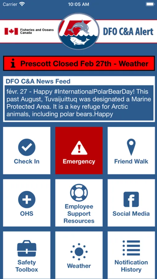 DFO C&A Alert is the official safety app of Department of Fisheries and Oceans - Central and Arctic. It is the only app that integrates with DFO C&A's safety and security systems. DFO C&A Security has worked to develop a unique app that provides students, faculty and staff with added safety on the DFO Central and Arctic campus. The app will send you important safety alerts and provide instant access to campus safety resources.