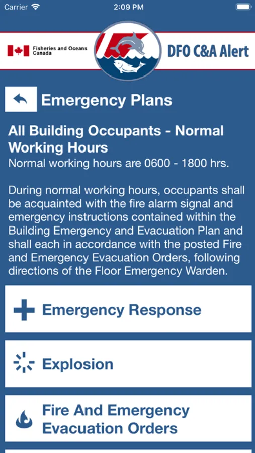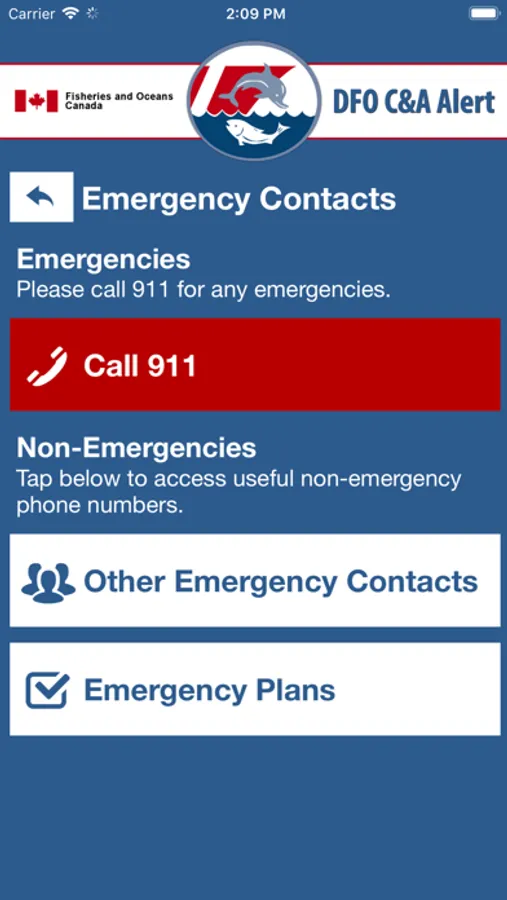 - Emergency Contacts: Contact the correct services for the DFO C&A area in case of an emergency or a non-emergency concern