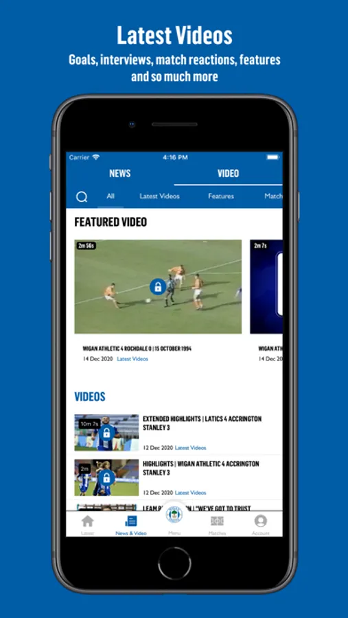 Welcome to the official Wigan Athletic App. Here you can watch and listen to Wigan Athletic fixtures and check out all the latest Latics news including transfers, interviews and behind the scenes.