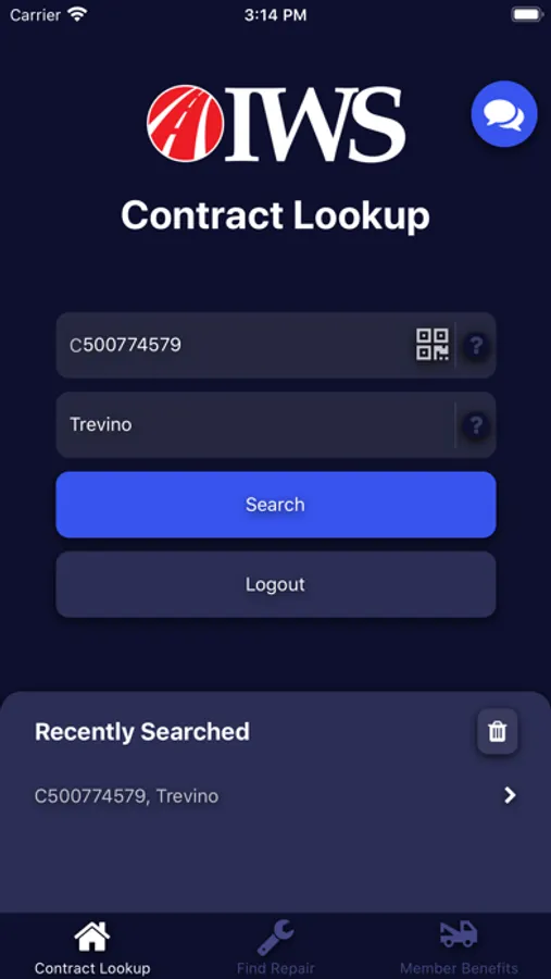Get started using the contract Declaration page you received in the mail from IWS. Scan the QR code or enter your contract number and last name. You will then be logged in and presented with an overview of your contract information and claims. If allowed, the app will receive push notifications about claims status changes.