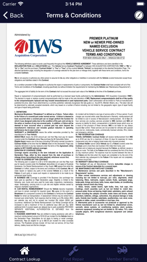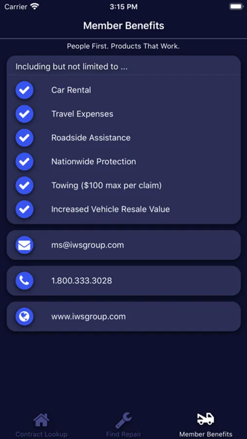 IWS VSA is a way for our members to stay connected and up-to-date on their Vehicle Service Agreements. Check contract information for accuracy, get claim status with push notifications, find nearby repair facilities, and have questions answered by our professional Member Services department.