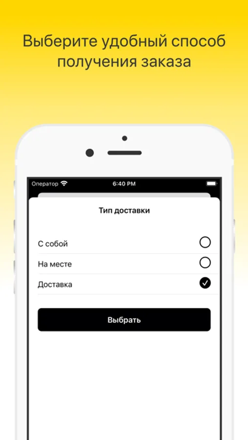 Укажите время, когда хотите прийти за своим заказом или выберите доставку с указанием времени и адреса доставки.