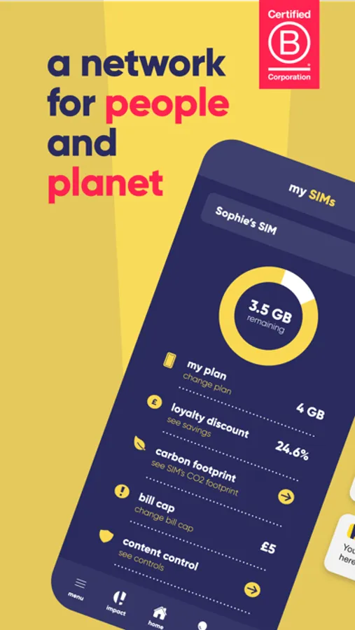 Want a mobile network that puts people and planet first? That sends you notifications to let you know when you could downgrade to a cheaper plan? Or might have forgotten to connect to WiFi? A mobile network that runs exclusively on green data. Built for people who care about our planet.