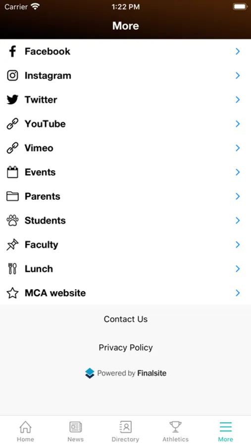 The information presented in the Finalsite app is drawn from the same source as the Mount Carmel Academy website. Privacy controls restrict sensitive information only to authorized users.