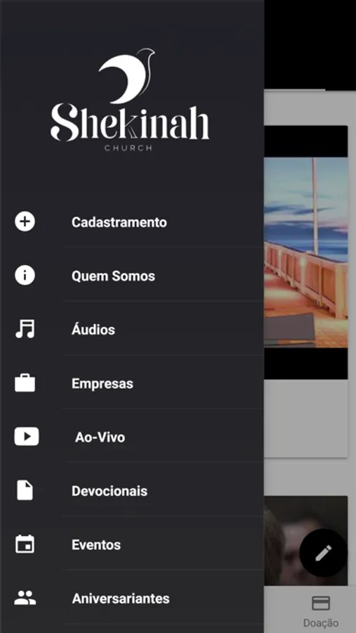 Aplicativo Oficial da Comunidade Cristã Shekinah conta com as seguintes funcionalidades: