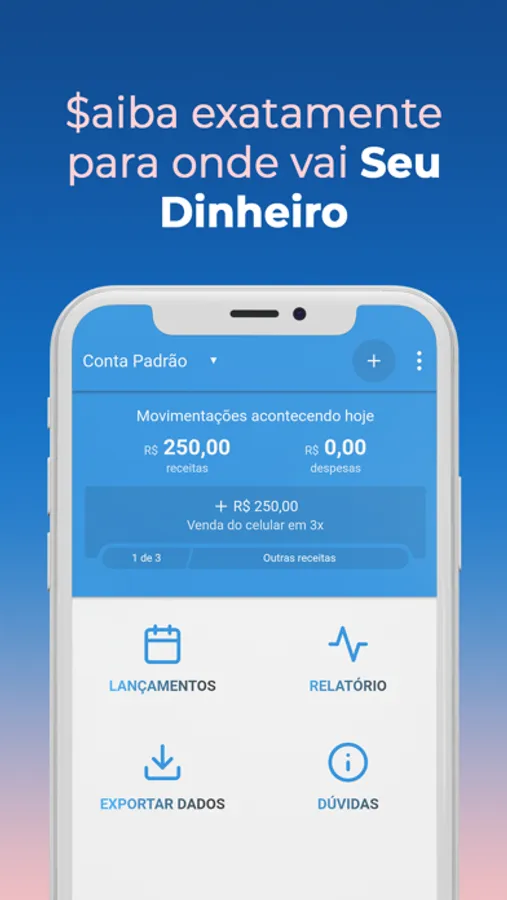 Agora você não precisa mais pedir ajuda pra um parente para ter sua independência financeira, basta entrar no aplicativo e em menos de 3 cliques registrar quanto você gastou no dia!
