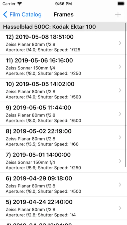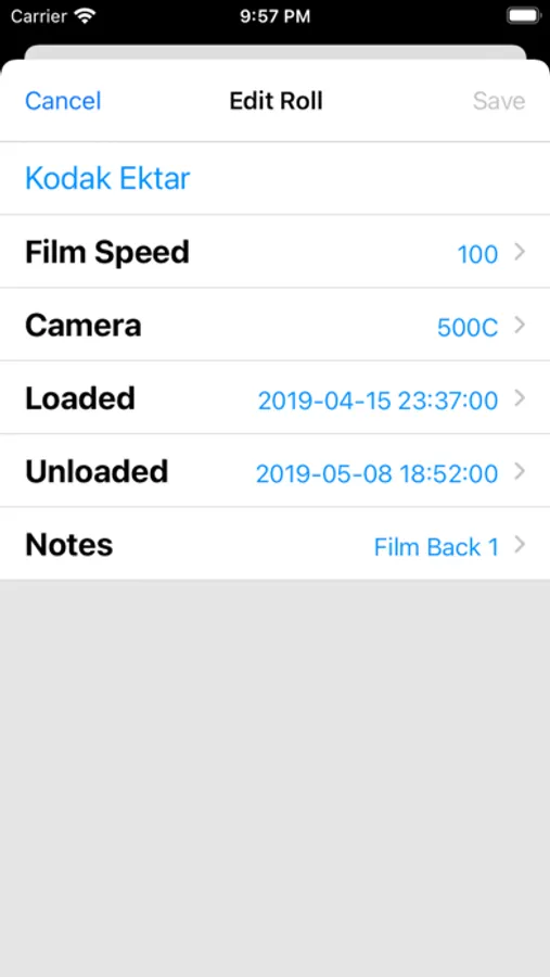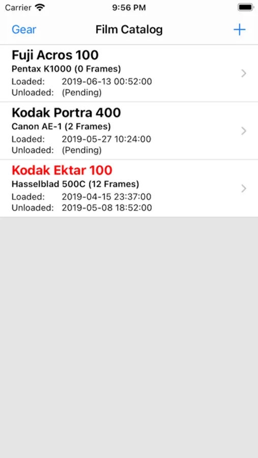 • See all of your added film rolls at a glance, including the number of frames added to each roll, as well as load/unload dates to show which rolls are still in use.