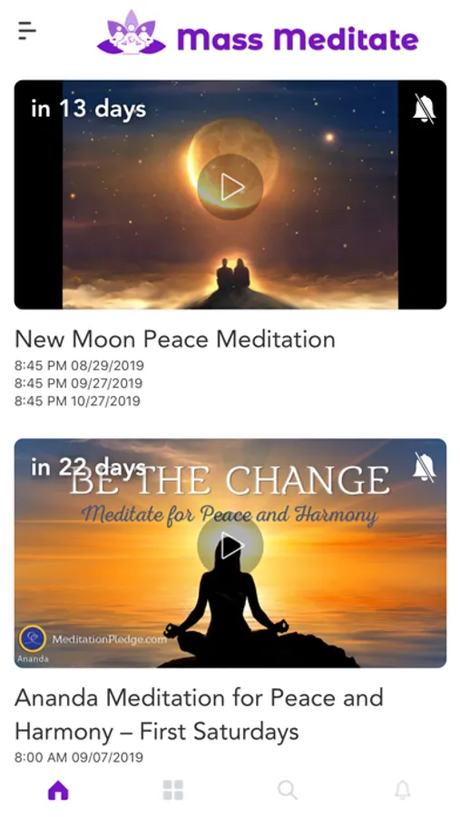 Abundant evidence now exists showing the power of group meditation to affect the consciousness of others. This app exists to let you see mass meditations happening worldwide and set a reminder to join in to those you align with.