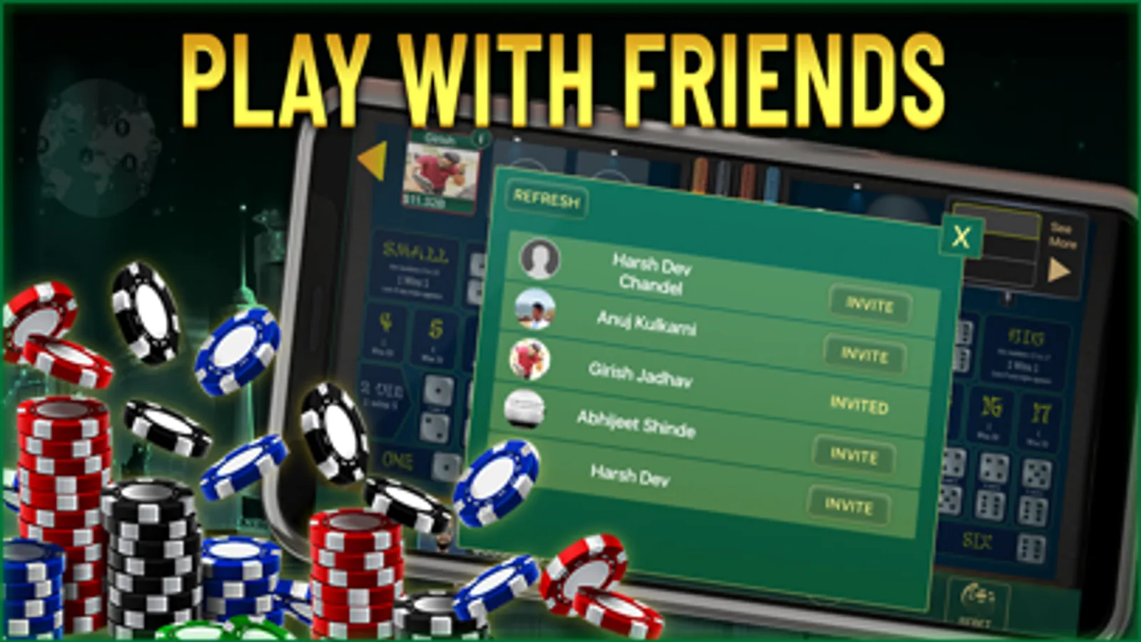 Play with your social friends on our modern multiplayer Live Sicbo tables. There are various tables to choose from as you cross Levels and unlock bigger Casino rooms.