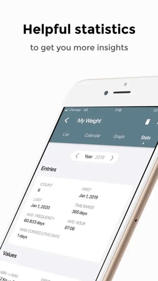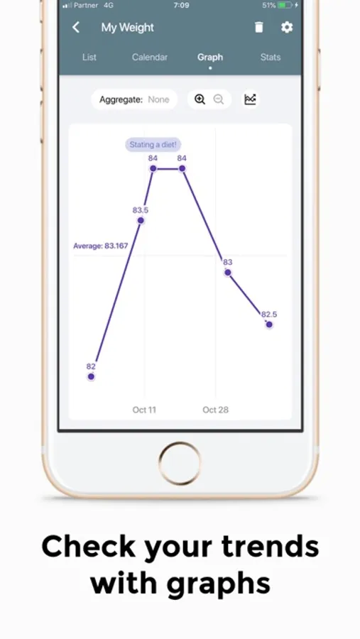 • Set goals – define and monitor goals using your logged data.