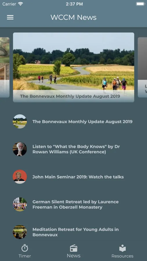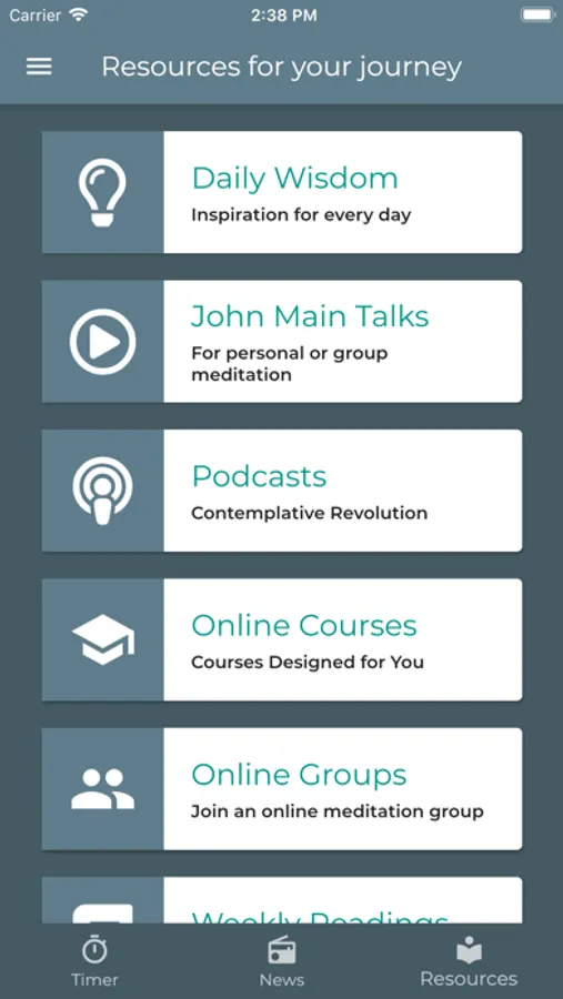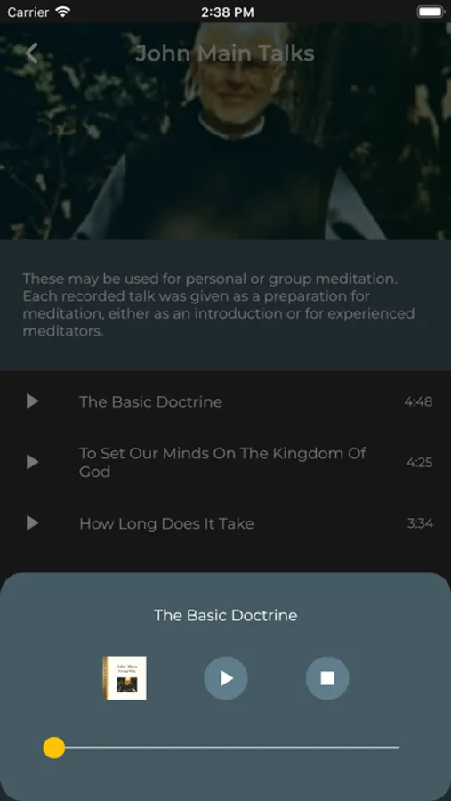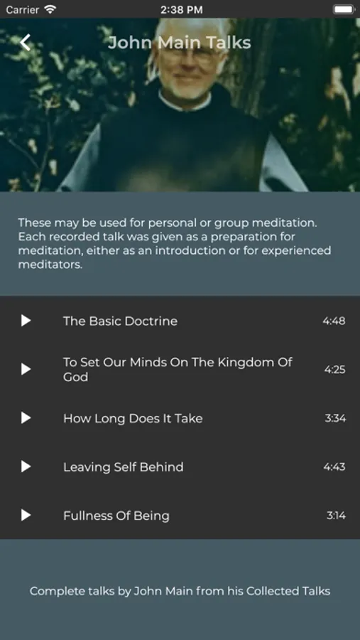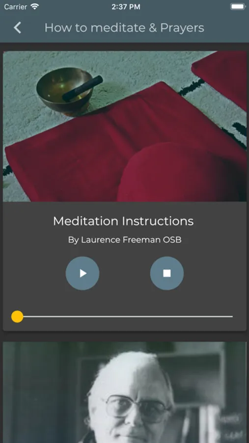 - quick access to meditation beginning and ending prayers from the meditation timer page, plus the possibility to play the audio of Fr. Laurence's meditation instructions.