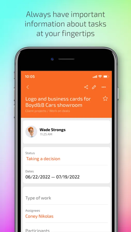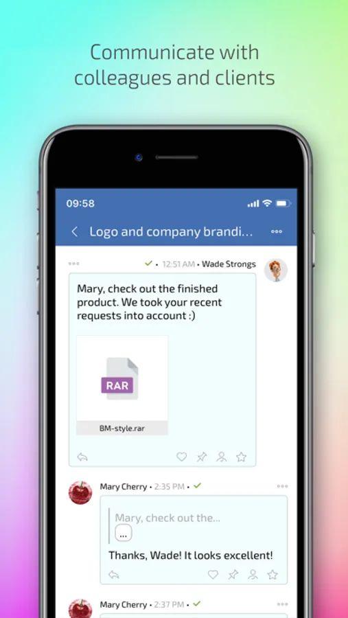 Configuration happens through the web service. The mobile app lets you receive messages from colleagues and clients — regarding new tasks, comments, and reminders — and handle them quickly and effectively. The app is currently being actively developed, and every release contains new features.