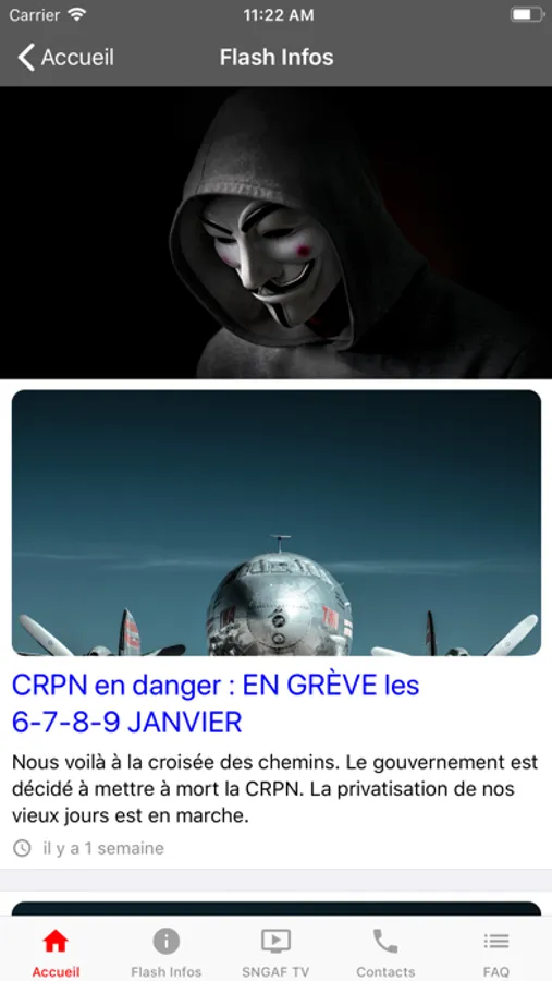 - Les FLASHS SNGAF : tous les tracts en version numérique, plus besoin de passer à votre casier pour rester informé de l’actualité… en plus, ça sauve des arbres ! Découvrez aussi les FLASHS ROUGES, informations capitales communiquées par vos DP SNGAF en temps réel.