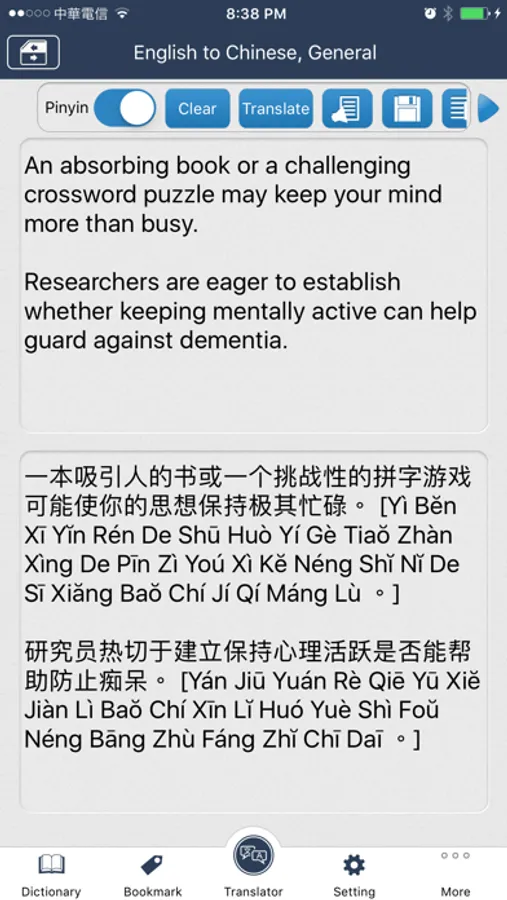 Display Pinyin expression for both translation and dictionary lookup features. A great tool for learning Chinese.
