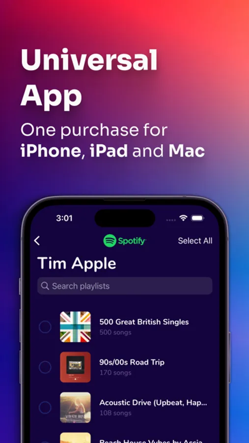 - Connect an unlimited number of Apple Music and Spotify accounts.