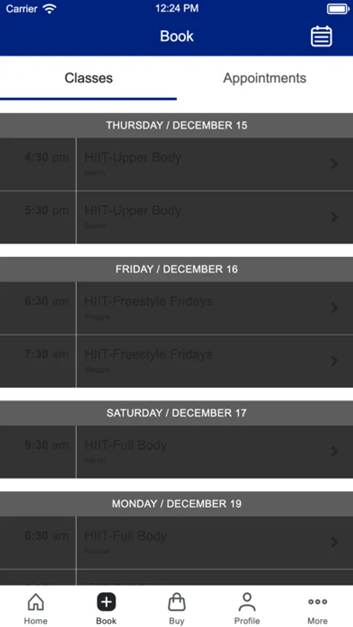From the XYMOGYM App you can view class schedules, sign-up for classes and appointments, as well as view the gym's location.