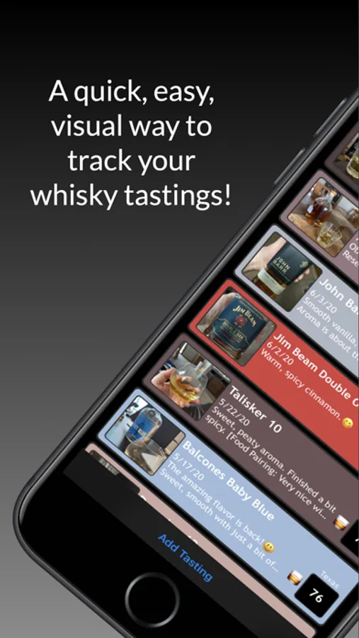*See the flavor profile, rating, date and notes on all of your whisky tastings with just a glance.