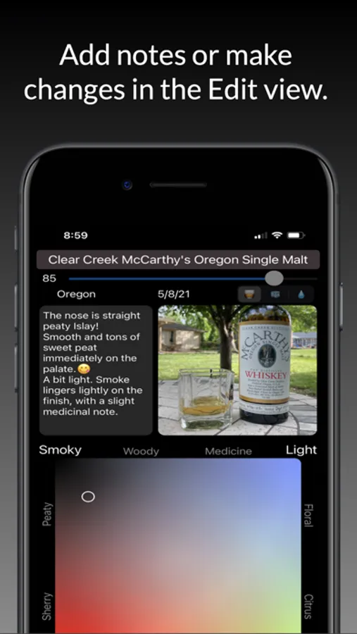 Keep track of all your whisky tastings quickly and easily. Spend more time drinking whisky and less time making notes.