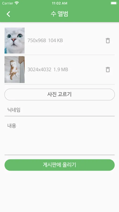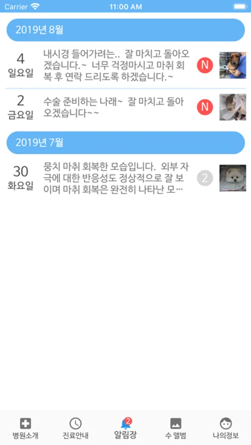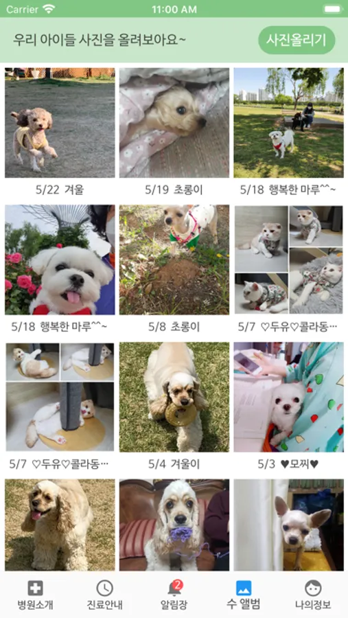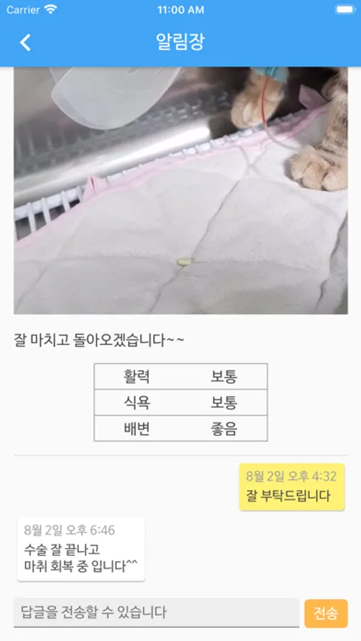 입원이나 호텔시 우리 아이 상태를 매일 사진과 노트로 받을 수 있어요