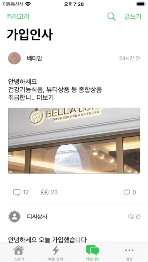 다른 판매자와 소통할 수 있는 공간을 마련했어요. 게시글을 올리고 댓글도 달아보세요.