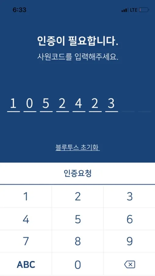 블루투스 기능이 내장된 아이폰이 있어야 합니다. (블루투스 4.0 이상)인증후 사원인증코드를 받게 되면 QR코드가 생성되며 QR코드 카메라에 폰을 대시면