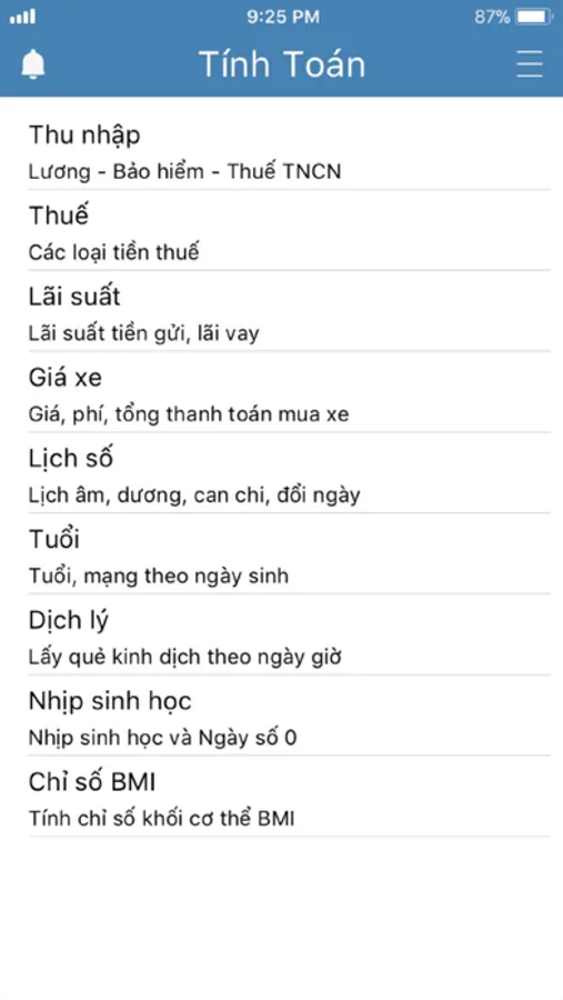 - Tuổi: Tính tuổi theo ngày sinh, mạng, quẻ chủ mạng, tiết khí