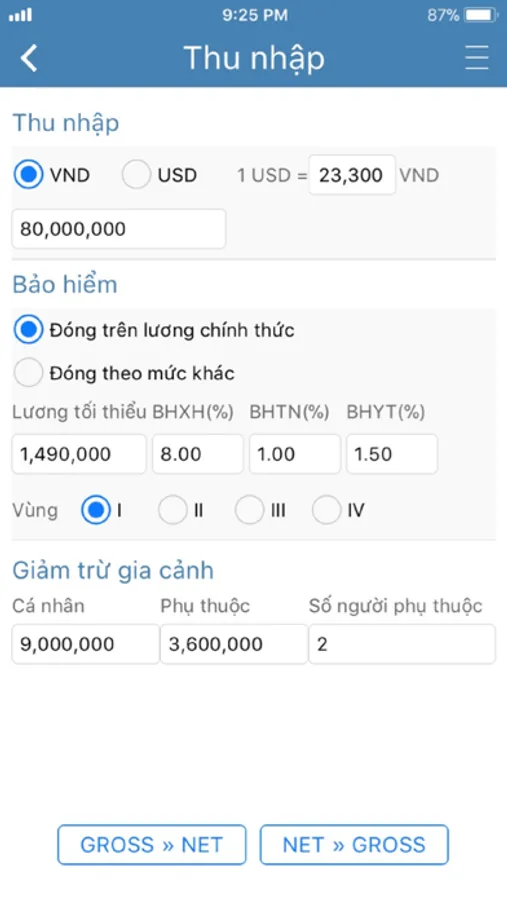 - Thu nhập: Thu nhập GROSS, NET, các loại bảo hiểm, giảm trừ, thuế thu nhập cá nhân