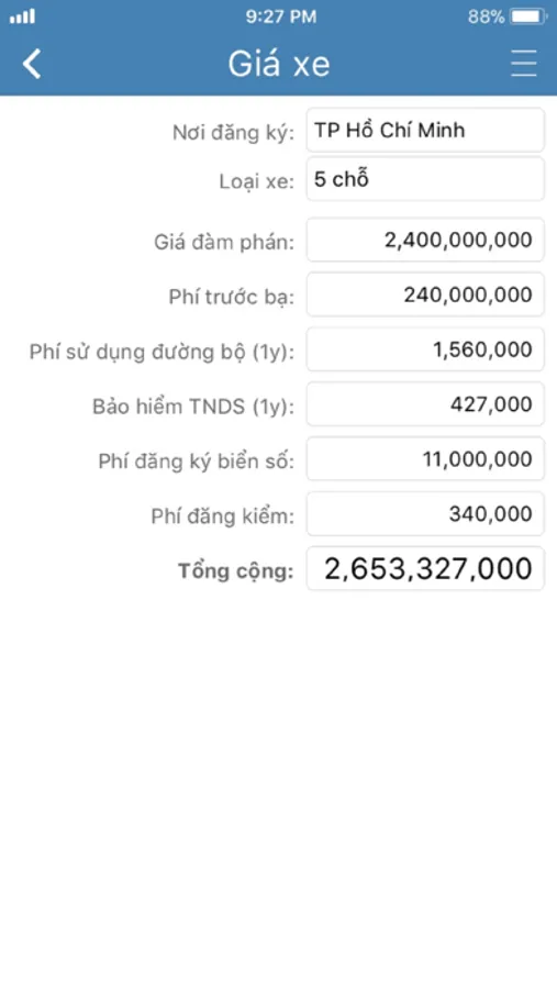 - Giá xe: Từ giá xe đàm phán tính toán ra Giá xe lăn bánh