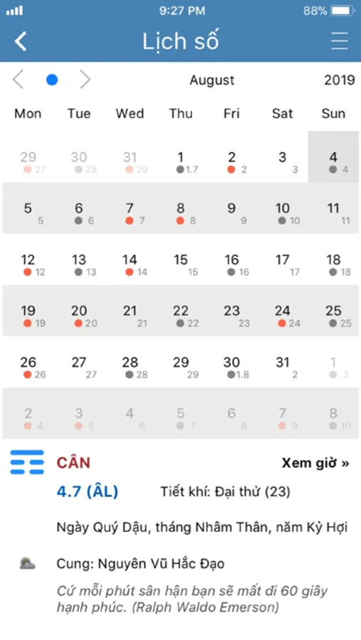 - Lịch số: Lịch Âm-Dương-Can Chi, thông tin bồ sung theo ngày giờ