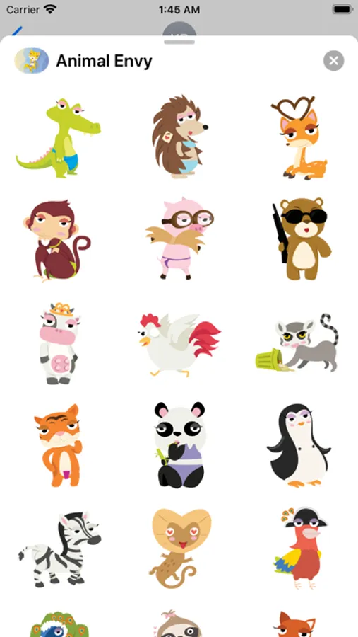 Ever go to the zoo and wish animals were a little more entertaining? Look no further. Enclosed in this sticker pack are 33 images of sassy, funny, and just plane cute cartoon animals intended to comedically represent people. Perfect for expressing yourself and making texts more interactive, all stickers come ready to send. Just tap or drag your desired sticker into a text stream and let the party begin.