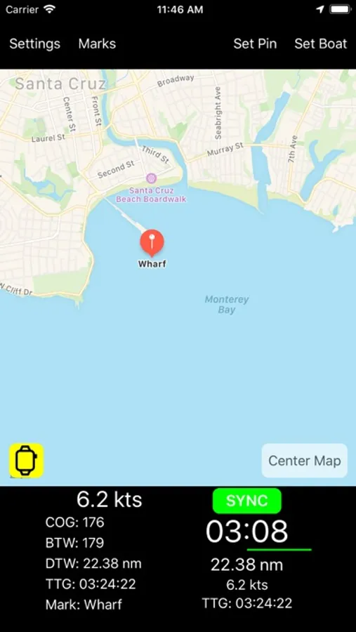 Watch app to make available selected sailboat instrument features on your wrist via an Apple Watch. Relevant activities before the start signal (set pin and committee boat locations to define start line, set countdown timer and sync to committee boat time.) Also includes ability to manage waypoints on companion iPhone app (click on the map) and download waypoints to the watch for "GoTo" navigation during the race. The iPhone app includes views of what the watch will display, in case you don't have a watch.