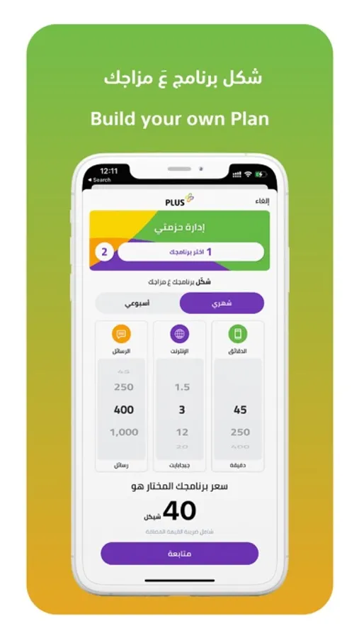 "PLUS" the first telecom digital program in Palestine. The new Unique Innovative Experience! Now for all Jawwal prepaid subscribers, you can easily build your own plan, and choose the value of 3G, minutes and messages bundles as it suits you and according to your needs; through "Plus" application, and the value of the chosen package will be deducted from the main balance. Download the application now to enjoy this new experience.