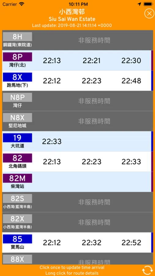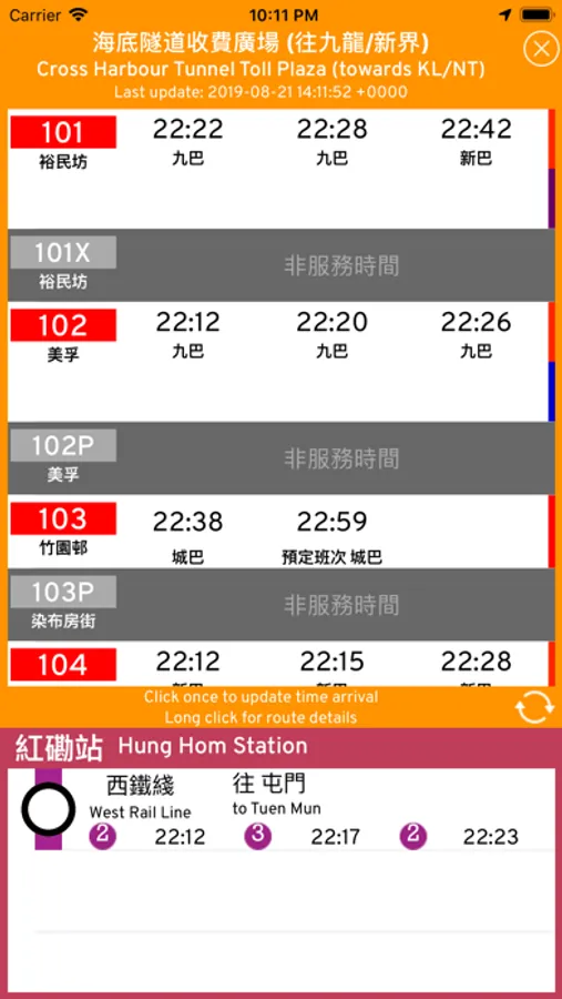 Provides estimated bus arrival time for all the KMB, NWFB, CTB, LWB, NLB,MTRB routes in bus stop.