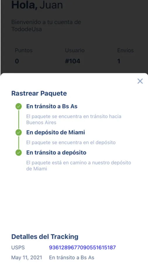 A través de tu cuenta vas a poder ver siempre el estado online de todos tus paquetes hasta que lleguen a Buenos Aires.