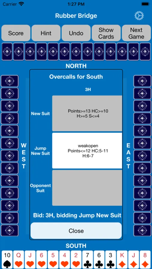 Includes explanations of all of the bidding options for yourself and your opponents. Shows hand profiles based on everyone's bidding. Provides hints for card play.