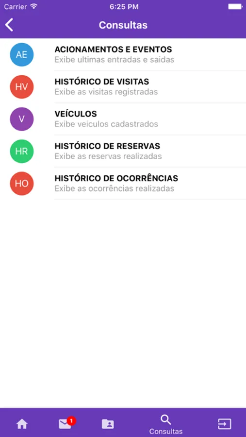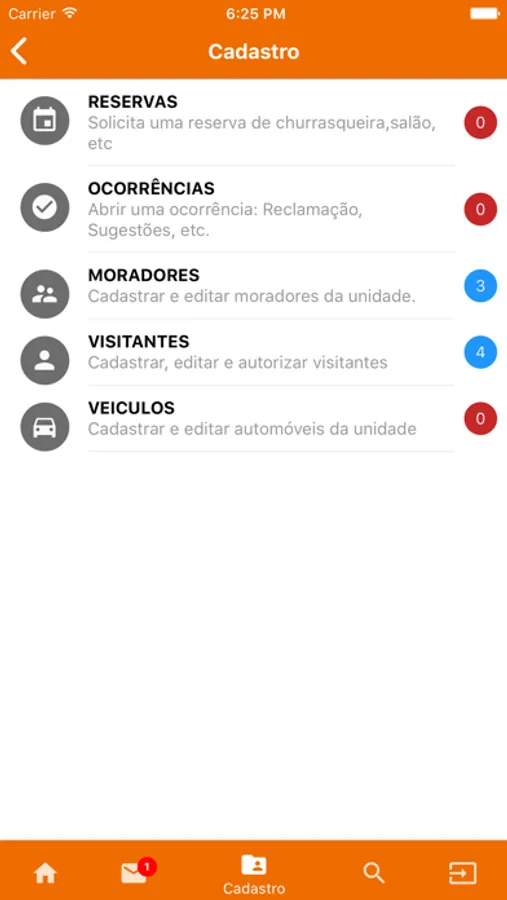 - Mensagens do síndico, zelador e porteiro.