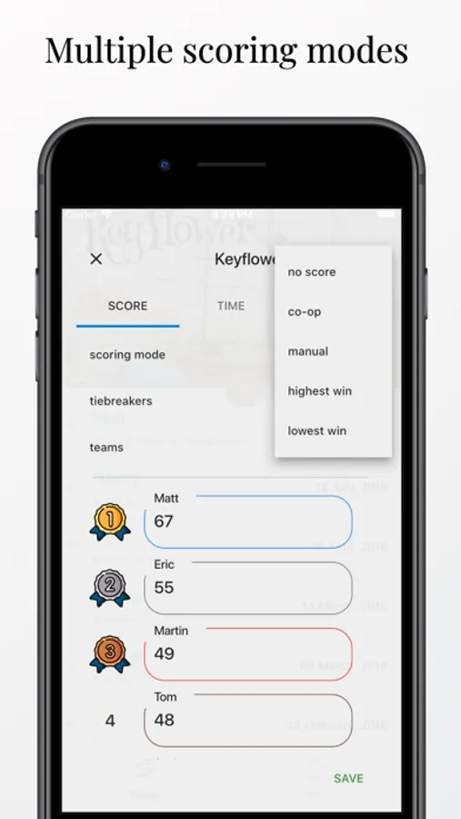 - Scoring modes that fit most games (highest, lowest, manual, coop, no points, solo, tiebreakers)