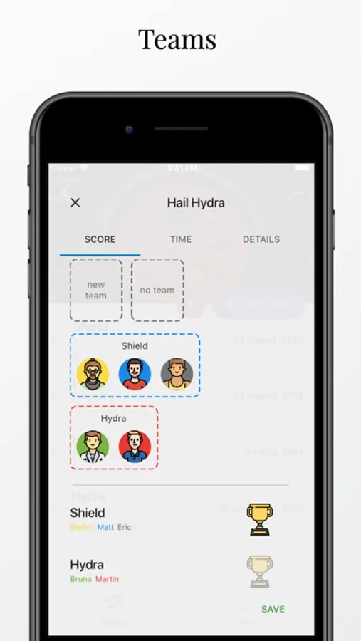 - Arrange teams after the game for team scoring or before the game if you want to track time per team