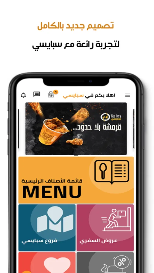 تطبيق سبايسي الخاص بمطعم سبايسي كركوك والذي يمكنك من تصفح قائمة الأكلات وطلبها وأنت جالس في بيتك بكل سهولة كل ما عليك هو ان تختار الطلبات التي تريدها وتدخل معلوماتك ليصلك الطلب الى باب البيت