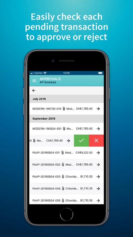 The App lets you view all pending approvals at a glance. It is an incredibly easy way to check pending transactions and to approve or reject them with effortless swipes.