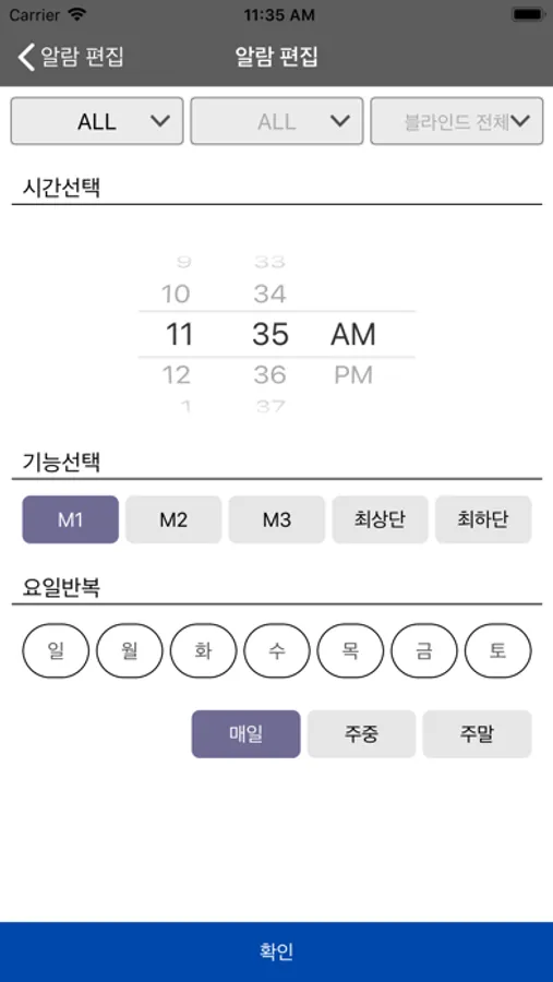수신기 갯수에 상관없이 조작할 수 있습니다. 또한 알람 기능의 추가로 원하는 시간에 원하는 위치로 블라인드를 올리고 내릴 수 있습니다.