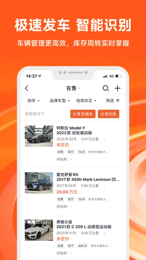 4. 微店。将库存中的车辆上架至微店后,可通过微店分享给客户进行查看。客户留下的线索信息也会回传至新大风车客户端中,供车商销售员进一步采取跟进动作。