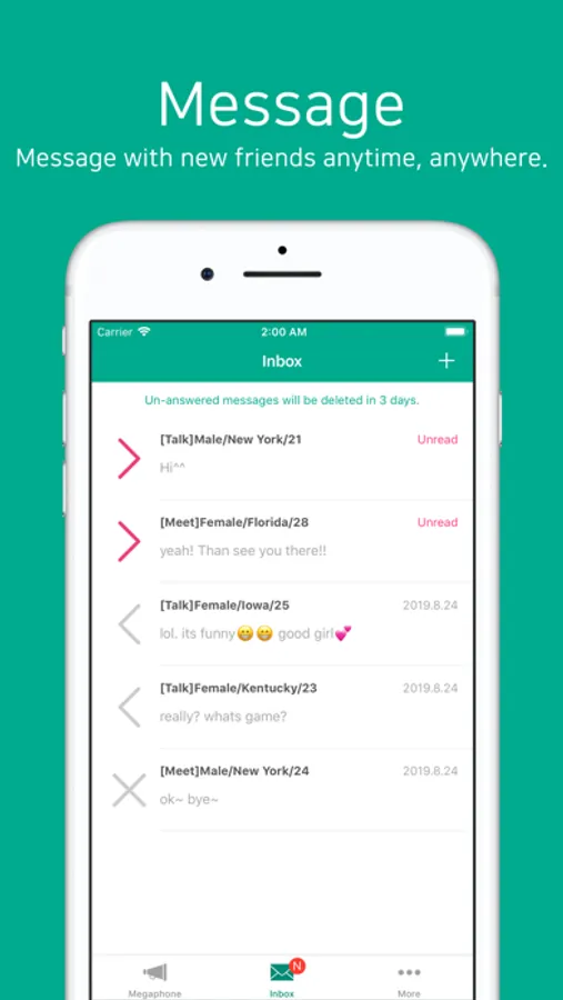 - You can post a megaphone which will be shown to a number of another user and you can reply to different megaphone message.