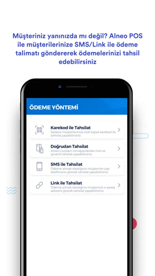 Müşterilerinize daha hızlı işlem ve kolaylık sağlayabileceğiniz yeni nesil bir dijital ödeme uygulaması olan Alneo, üye iş yerlerimizin herhangi bir fiziksel POS cihazına ihtiyaç duymadan zaman/mekân bağımsız tüm banka/kredi kartlarına taksit seçenekleri ile müşterilerinden ödeme almaya başlayacağı bir mobil uygulama.