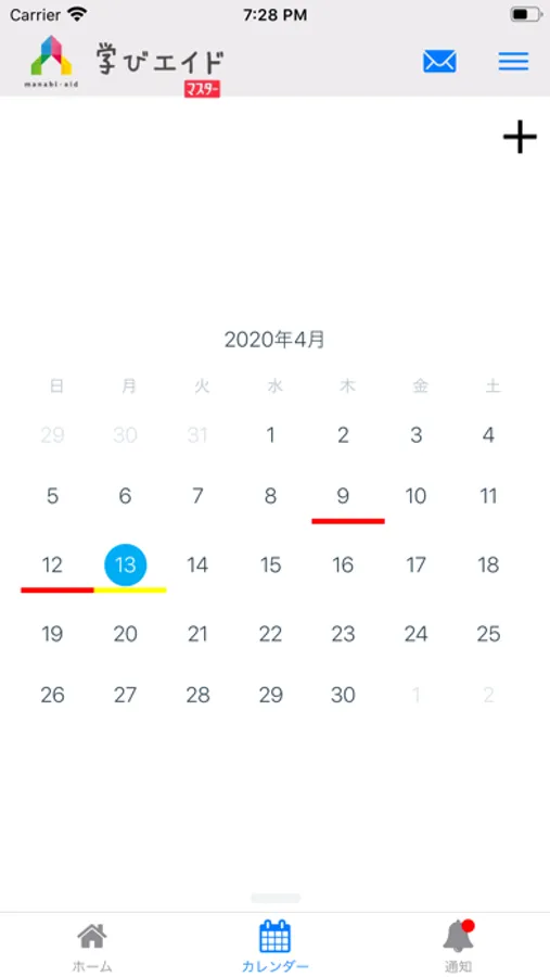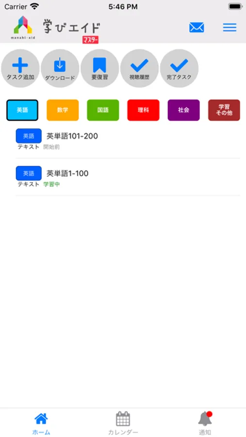 タスクの管理、動画視聴、塾からのお知らせ、メッセージをやり取りすることができます。