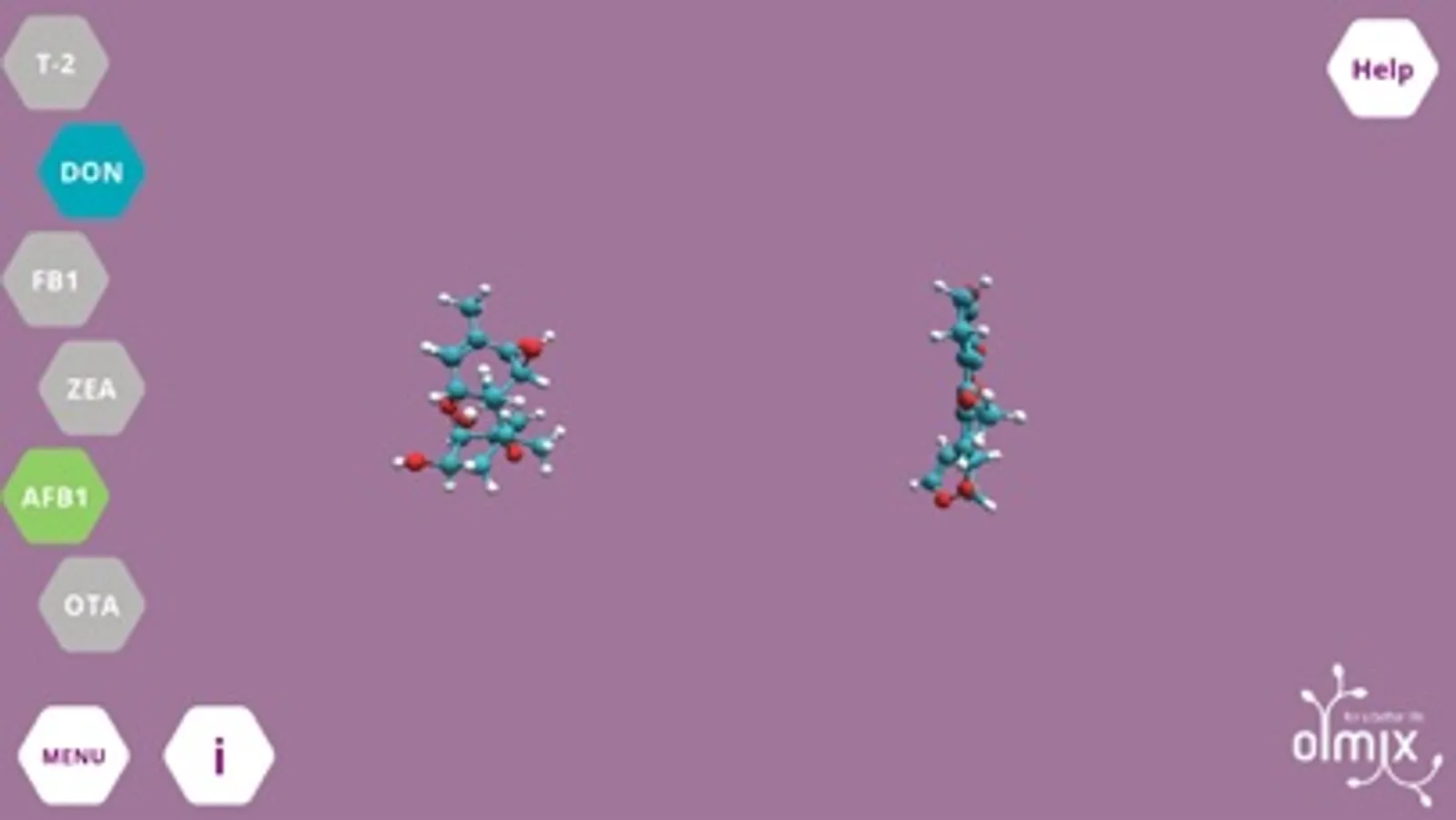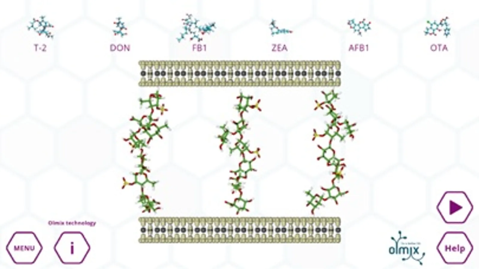 This innovative App is the result of an important scientific review that permits to characterise physico-chemical differences of mycotoxins. Myco’Simulator allows to display the 6 major mycotoxins in 3D, to compare them and to access information about their physico-chemical characteristics and toxicity in animals. Based on scientific reviews, the App also permits to simulate the adsorption of mycotoxins by the major adsorbents.