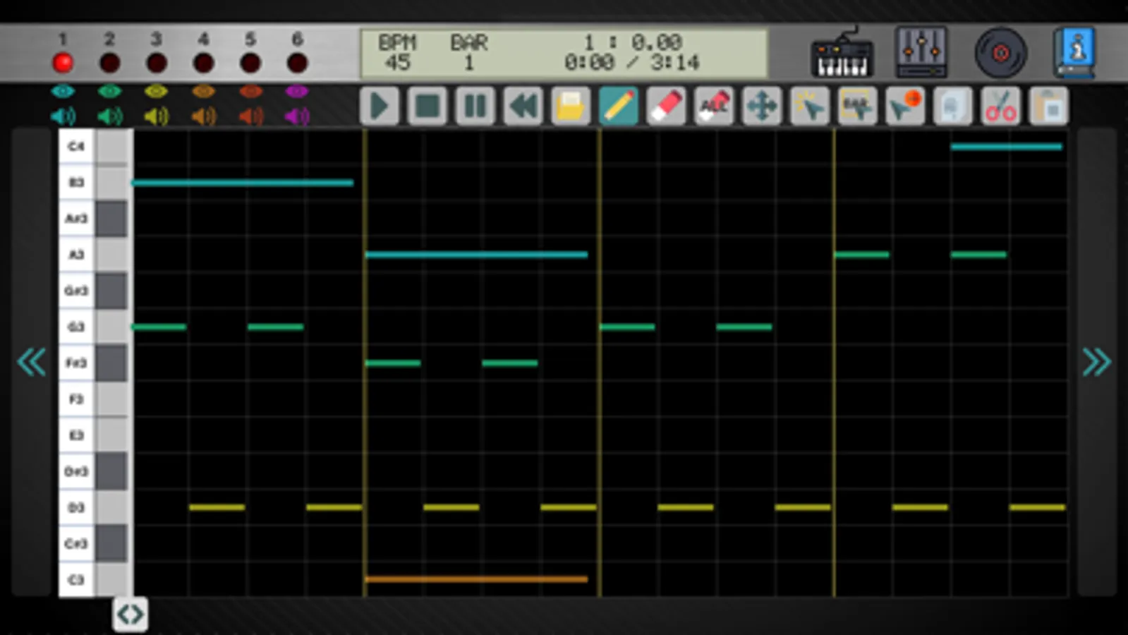 - Draw lines on the sequencer and listen to your songs.