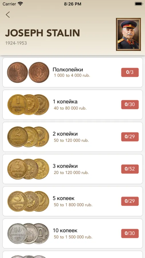 Full catalog of coins of the USSR and modern Russia. Each coin has clear clickable photos, a comprehensive description of the circulation, metal composition and size, and the catalog also lists the types of coins.It is possible to add a coin to your collection with a choice of coin status. The app can work offline, and you can create and export your own collection. A new feature - search by photo-should appear soon. We have done a great job for your convenience, while some of the rulers are open for absolutely free use. Collect and add to your collection with us!