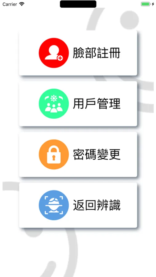 管理者第一次登入需設定密碼,下次開啟APP需用管理者設定密碼做登入,才有權限使用後續臉部註冊、用戶管理、密碼變更、返回辨識功能