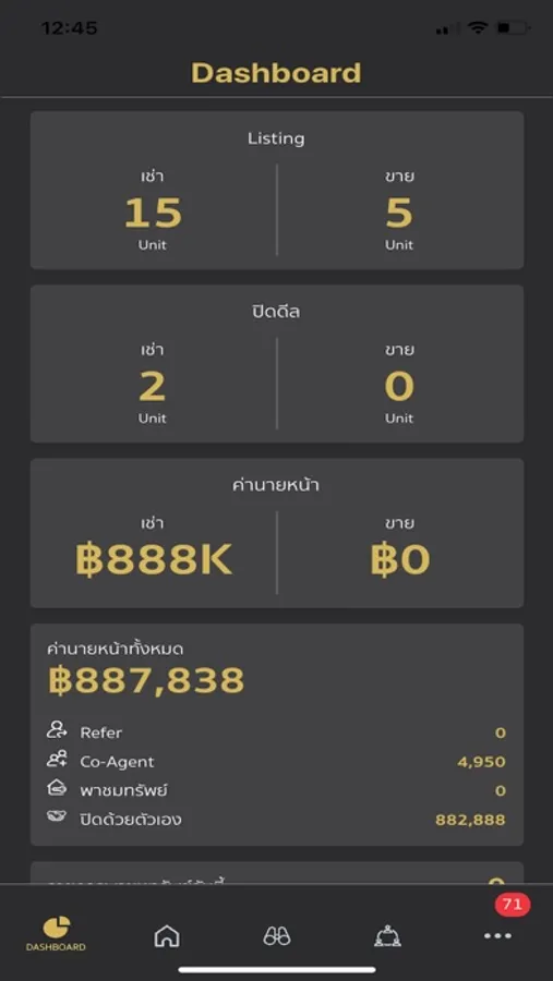 1. Dashboard สำหรับดูภาพรวมทรัพย์ของคุณ ทั้งจำนวนทรัพย์ขายเช่า และรายงานค่าคอมมิชชั่นเพื่อติดตาม performance ของคุณ รวมทั้งตำแหน่งที่ตั้งทรัพย์ทั้งหมดของคุณแสดงในรูปแบบแผนที่